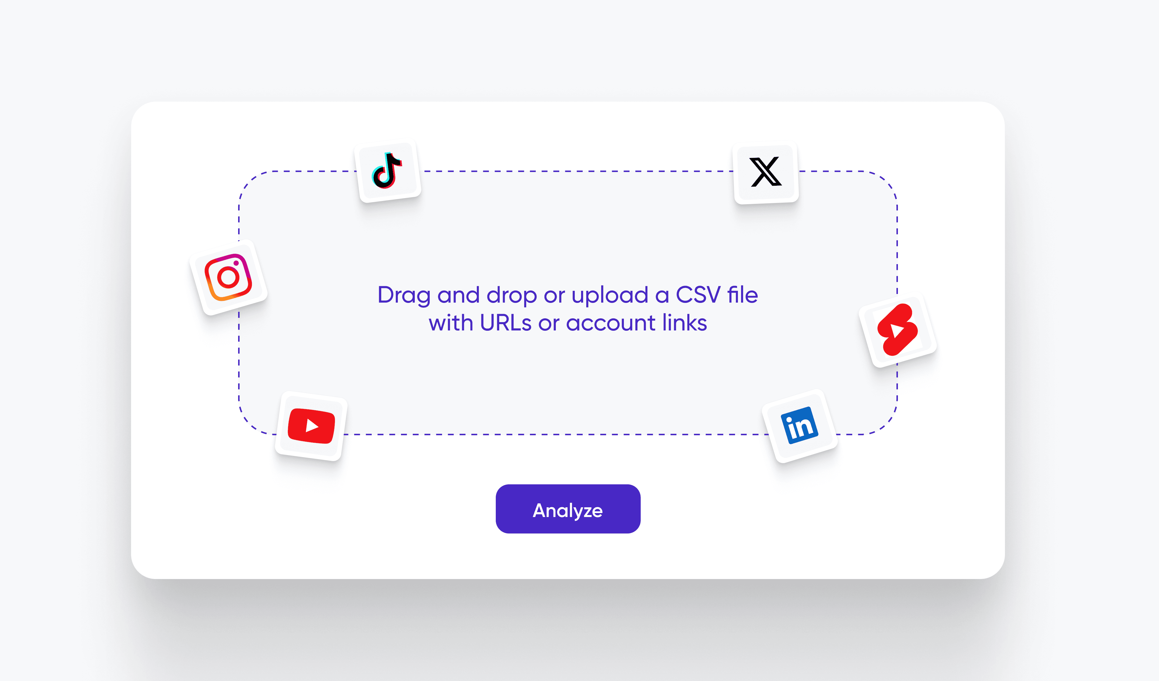 Paste in a link or upload in bulk. Siftsy pulls insights from TikTok, Instagram, YouTube, and more.